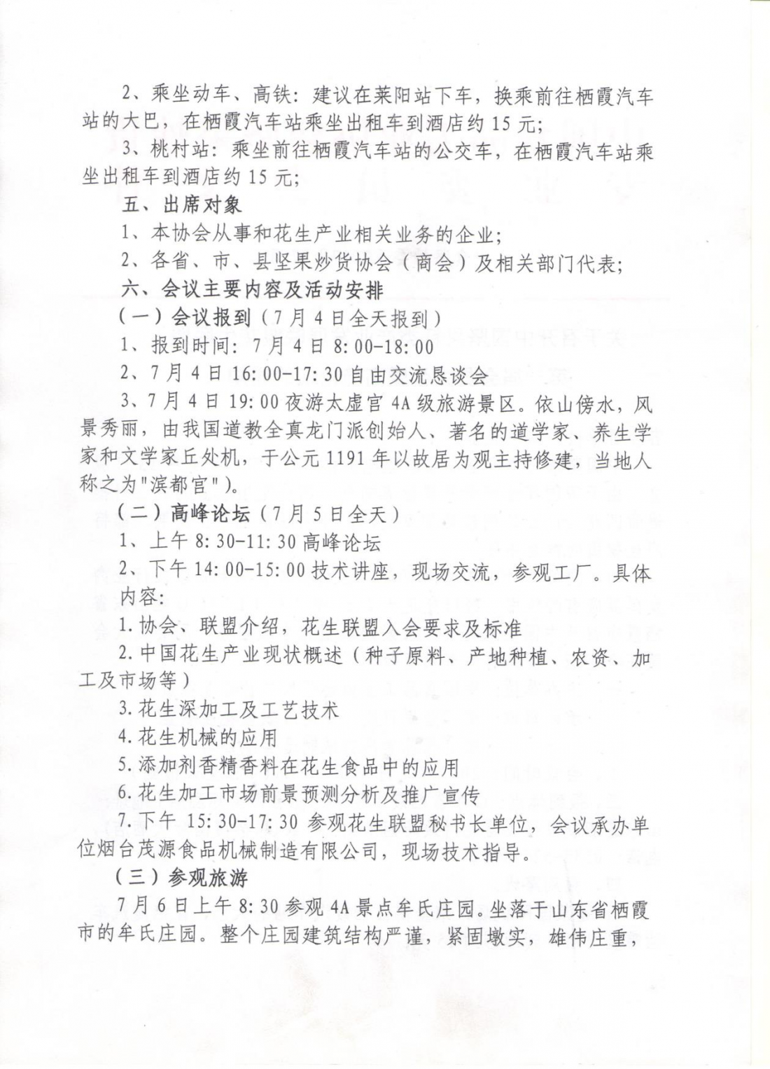 出席本次大會的嘉賓有本協會從事和花生產業相關業務的企業,各省、市、縣堅果炒貨協會(商會)及相關部門代表。本次大會內容安排流程:1.協會、聯盟介紹,花生聯盟入會要求及標準;2.中國花生產業現狀概述(種子原料、產地種植、農資、加工及市場等);3.花生深加工及工藝技術;4.花生機械的應用;5.添加劑香精香料在花生食品中的應用;6.花生加工市場前景預測分析及推廣宣傳;7.參觀花生聯盟秘書長單位,會議承辦單位煙臺茂源食品機械制造有限公司,現場技術指導。