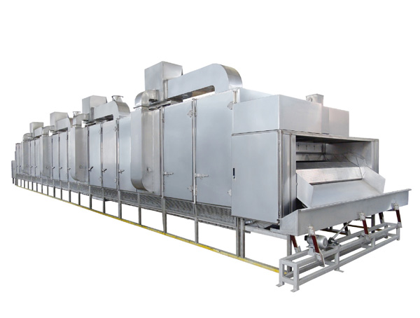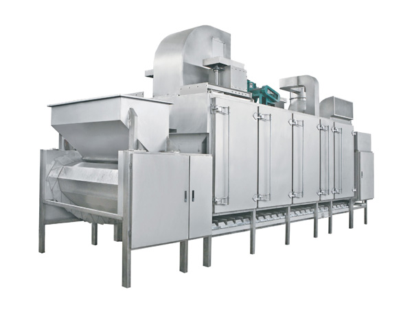 該烤爐采用循環熱風方式進行穿透式烘烤;烘烤過程物料厚度、行進速度自動可調,連續進出;烘烤溫度單元式控制,可實現各單元溫度獨立調整;后置獨立冷卻區,無需單獨冷卻;模塊式結構,產量提高亦無須變更設備;熱源多元化,可使用天然氣、液化氣、導熱油、電等。本機以其結構及性能的優越特點,為堅果炒貨行業提供了一機多用,產品質量穩定的理想設備,主要可加工的產品有五香花生米、乳白花生米、磨醬米、巴旦木、腰果、蕎麥等各種顆粒類食品。